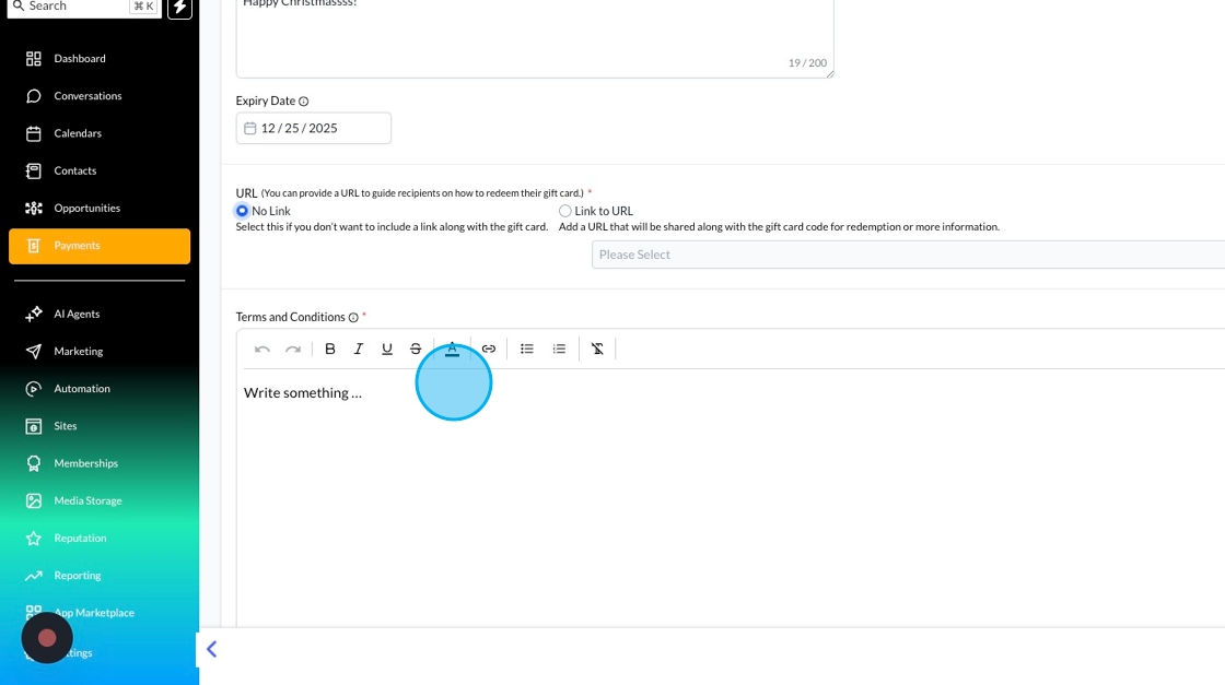 You can also add a link to a web address if you want. This will go out with the card information when it's sent, but it will also allow you to direct people to a website where you can provide further details about redemption, for example.
