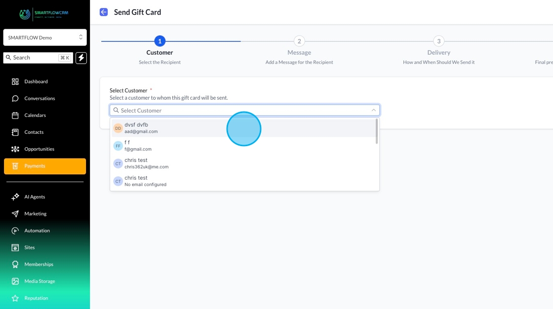 You’ll then be able to decide who to send it to and personalise the message that goes out with the card.