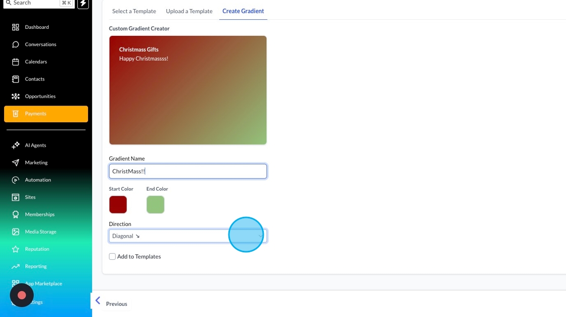 When you create a gradient, you’ll be able to choose the colours, name your gradient for future reference and change how the gradient looks.